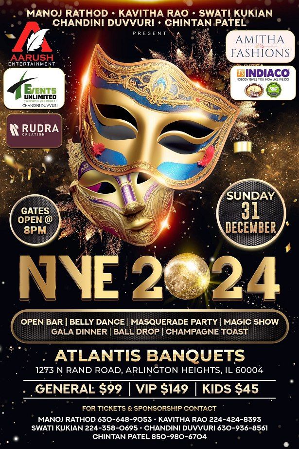 NYE Extravaganza 2024 in Chicago, Atlantis Banquets, Arlington